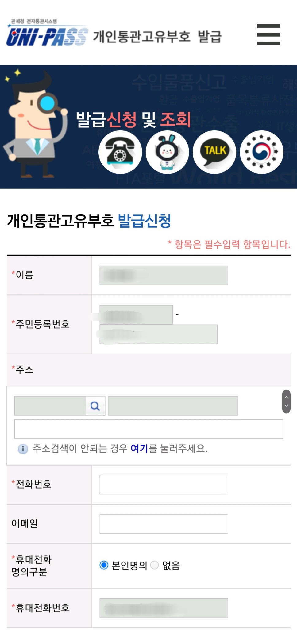 "개인통관고유부호발급"은 간단한 본인인증 후 이용 가능 합니다.