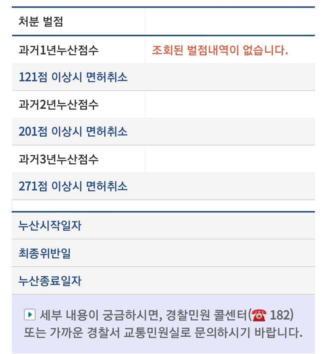 감사하게도 저는 조회된 벌점 내역이 없네요^^
