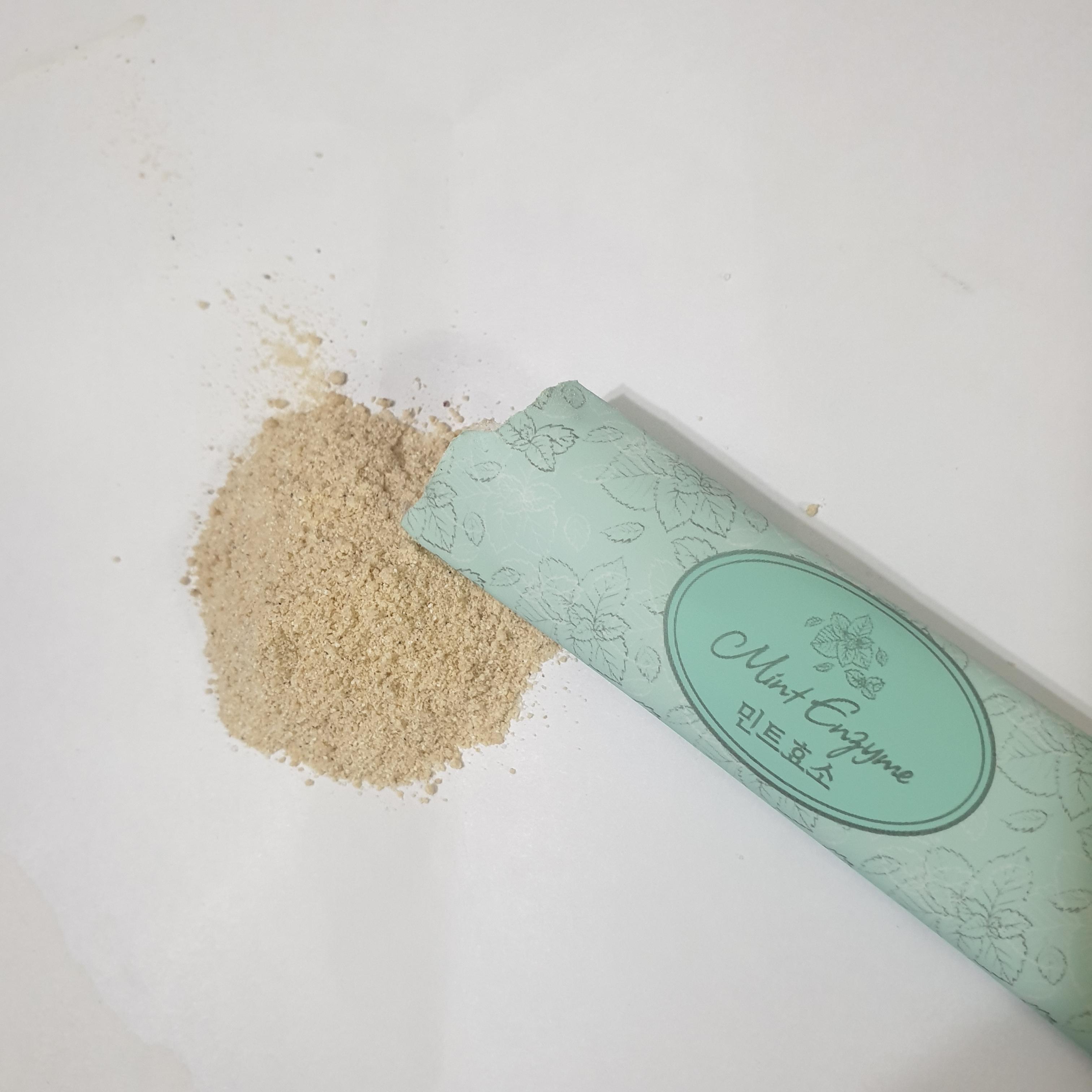한 포에 3g 들어있고, 가루의 색은 여타 다른 효소와 다를 바가 없어요.